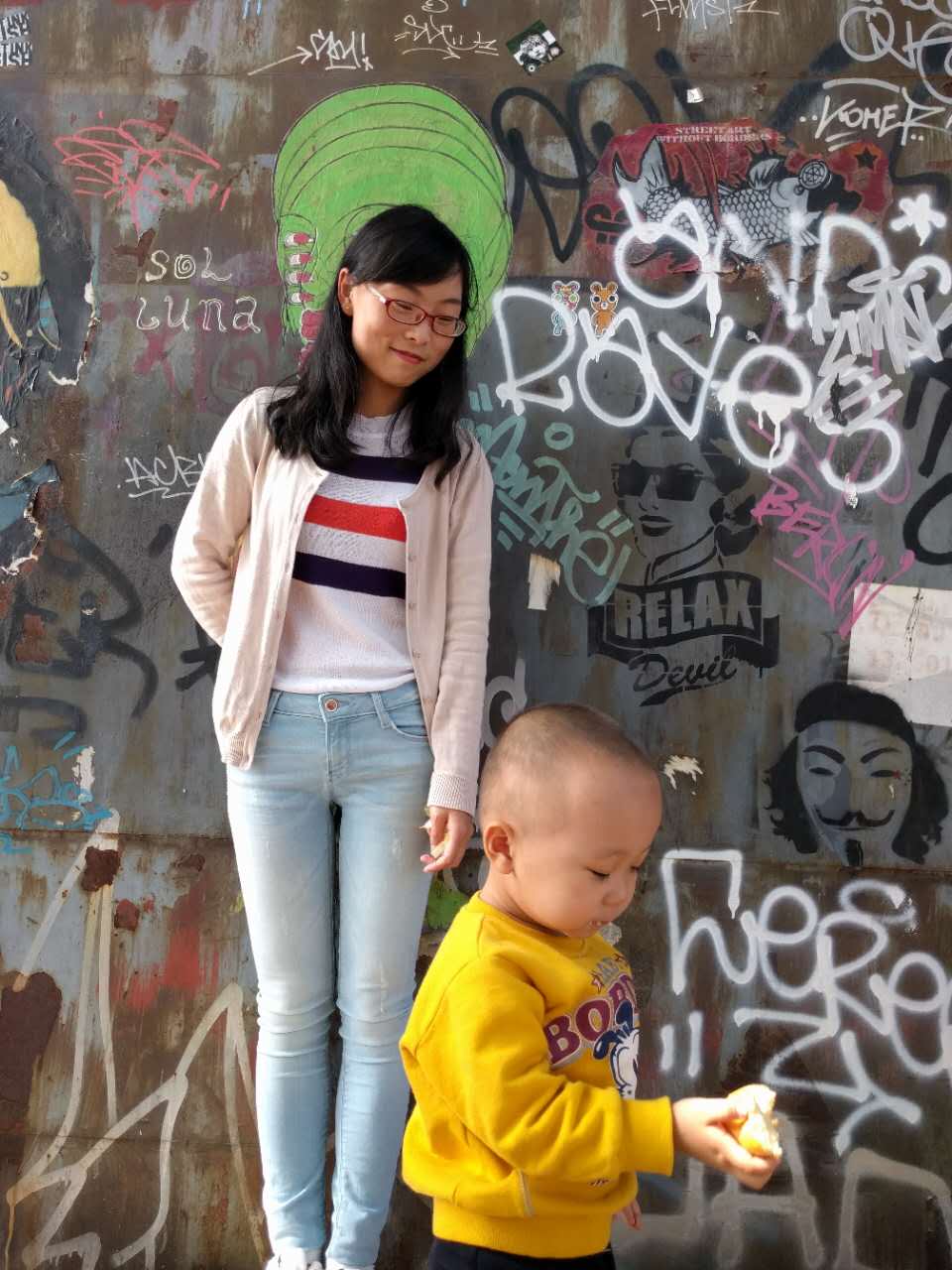 充满艺术气息的798里,我在一面墙下,又吃了个面包。