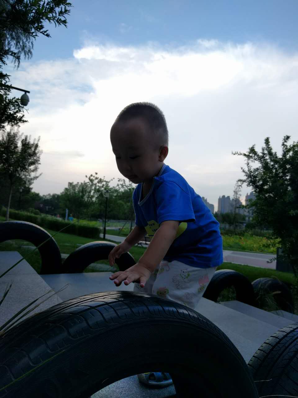 爸爸妈妈带着滑板车,滑板车带着我,奔向望和公园。
